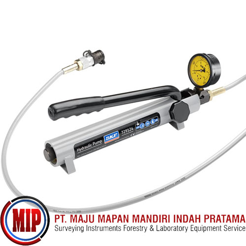 The 729124 has a maximum pressure of 100 MPa (14 500 psi) and delivers a volume per stroke of 0,5 cm3 (0.03 in3 ). The pump is suitable for SKF hydraulic nuts (≤ HMV 54), and for mounting or dismounting bearings or components with an interference it applying the SKF Oil Injection Method, where a maximum pressure of 100 MPa is required. The pump is supplied with a 1,5 metre long, high pressure hose with quick connection coupling. Mating quick connection nipple for attachment to the workpiece is included. The pump is illed with SKF mounting luid LHMF 300 and comes with an additional 1 litre can with the same luid. Everything is packed in a sturdy plastic case. The pump has an overpressure valve and a pressure gauge. The release valve is an integrated part of the pump head.